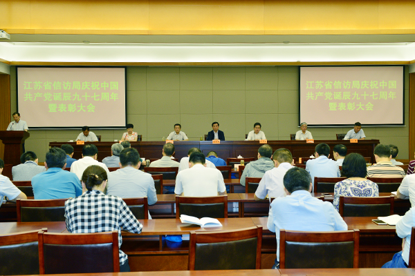 2018年6月29日下午,省信访局隆重召开纪念中国共产党诞辰九十七周年暨表彰大会,深入学习贯彻党的十九大精神和习近平新时代中国特色社会主义思想,落实全面从严治党要求,进一步弘扬正气、树立标杆,激励全局党组织和广大党员干部坚定信念、对党忠诚,履职尽责、奋发有为。省政府副秘书长、省信访局党组书记、局长姜金兵,局领导班子其他成员、派驻纪检组副组长尹存月以及全局党员干部参加大会。副局长王传东主持会议。